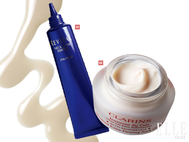 1 시세이도 리바이탈 넥존 에센스 X. 7만원. 2 클라란스 어드밴스드 엑스트라 퍼밍 넥 크림. 7만7천원. |