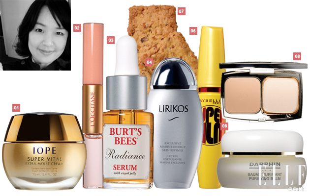 강옥진(beauty director) 1 아이오페 슈퍼바이탈 엑스트라 모이스트 크림 쫀득쫀득한 텍스처로 바르면 피부를 쫀쫀하게 잡아당겨 주는 느낌이 든다. 아쉬운 점은 부담스럽게 반짝거리는 골드 패키지. 가격 미정. 2 록시땅 쟈르뎅 델리스 롤온 오 드 뚜왈렛 앤 글로스 듀오 어떻게 립글로스와 향수를 세트로 묶을 생각을 했지? 수시로 꼭 필요한 두 아이템이 하나가 됐으니 파우치가 한결 가벼워졌다. 향도 물론 굿. 3만2천원. 3 버츠비 래디언스 세럼 로열 젤리를 주성분으로 하는 버츠비 제품이니 왠지 달콤한 꿀 향이 날 거라 기대했는데 웬걸, 식초처럼 시큼한 향이 나서 처음엔 놀랐다. 하지만 향은 금세 날아가고 피부엔 부드럽고 산뜻한 촉감만 남는다. 5만7천원. 4 리리코스 익스클루시브 마린 에너지 에멀전 마치 조금 묽은 토너를 바르는 느낌. 빠르게 흡수되며 피부에 청량감을 준다. 여름에 사용하면 좋았을걸. 각질 회복 기능이 있어서인지 피부가 한결 부드럽고 생기 있어졌다. 6만원. 5 메이블린 더 매그넘 볼륨 익스프레스 슈퍼 필름 일명 ‘서인영 마스카라’ 2탄! 슈퍼 필름이란 이름이 덧붙여진 이유가 뭐일까 보아하니 포뮬러가 한결 가벼워진 듯. 그래서 더 뭉침 없이 발리고 더 아찔하게 속눈썹이 컬링된다. 1만3천원. 6 달팡 아로마틱 퓨리화잉 밤 모기 물린 부위에 발랐더니 가려움이 사라졌다. 효과는 좋은데 아쉬운 점은 고체 타입이라 천천히 손가락 체온으로 녹인 후 발라야 한다는 것. 10만원. 7 오르비스 쁘띠 시리얼, 플레인 맛 한창 운동과 식단 조절을 병행 중인 내겐 너무나도 반가운 제품. 맛도 참 좋아 권장량 이상 먹게 된다는 게 문제라면 문제. 1만6천원. 8 코스메 데코르테 AQ 파우더 파운데이션 슈프림 SPF 15/PA++ 미세한 입자의 파우더가 피부를 보송보송하게 감싸준다. 커버력이 좋은 편으로 가벼운 화장을 선호한다면 리퀴드 파운데이션을 생략하고 이것만 발라줘도 충분할 듯. 장미 패턴의 화려한 패키지는 젊은 사람보다 어머니 세대에 어필할 것 같다. 16만원. |