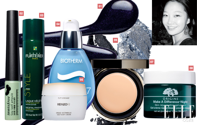 김미구(beauty editor) 1 이니스프리 소이 래쉬 앰풀 속눈썹을 풍성하게 하는 당장의 효과는 알 순 없지만, 동그랗게 생긴 전용 팁으로 아이라인을 마사지하는 기분만으로 꽤 만족스럽다. 2만2천원. 2 르네 휘테르 베지털 피니싱 스프레이 헤어 스프레이와 인연을 끊은 지 어언 10여 년. 어색하고 뻣뻣하게 고정되던 옛날 스프레이와는 확실히 차원이 다르다. 부드러운 고정력이라 신경 써서 드라이한 날 헤어 에센스 대신 사용하면 좋겠다. 3만3천원. 3 클라란스 하이드라퀸치 인핸싱 에멀전 피부 속 수분은 부족하지만 겉은 번들거려 이것저것 바르기 싫은 때. 수분 미스트를 칙칙 뿌린 뒤 이 제품 하나만 발라도 충만한 촉촉함을 느낄 수 있다. 5만7천원. 4 비오템 수르스테라피 7 나의 ‘화장대 냉장고’ 속에 있는 수분 에센스만 벌써 4개. 그 중 이 제품은 딱히 특출 난 점은 없지만, 오히려 그것이 장점! ‘수분 에센스, 뭐가 좋을까?’라는 질문에 가장 안전하게 추천할 만한 제품이란 얘기. 7만4천원대. 5 겐조키 나이트 쉬프트 크림 땀으로 얼룩진 화장, 피지 분비, 늘어진 모공 등 야근 후 거울을 보면 불쌍하기 짝이 없는 내 피부를 위한 제품. 9만1천원. 6 랑콤 옹브르 압솔뤼 쿼드 팔레트 룸에센스, A50 메트로폴리탄 핑크 시크한 컬러로만 구성돼 ‘메트로폴리탄 핑크’란 이름이 딱! 눈가가 무척 건조해 네 컬러를 바르면 어김없이 들뜨기 때문에 욕심을 버리고 두세 가지 정도만 믹스해서 사용하니 나도 메트로폴리탄. 6만8천원. 7 비디비치 by 이경민 퍼펙트 리파이닝 파운데이션 파우더 팩트를 바르면 어김없이 들뜰 정도로 건조한 피부인 내게도 합격점. 워터 파운데이션이라는 닉네임처럼 무척 촉촉해 들뜸 현상이 없어 만족스럽다. 7만1천원. 8 오리진스 메이크 어 디퍼런스 나이트 리주버네이팅 젤 크림 번들거림이 싫으십니까? 가격이 부담된다고요? 그렇다면 이 제품을 발라보세요. 젤 타입이라 가볍게 스며들고, 자는 동안 몰라보게 재생된 피부를 느낄 수 있을 거예요. 6만5천원. |