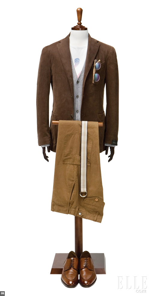 브라운 재킷은 어떤 남자라도 단번에 차분한 스타일로 만들어주는 ‘진정제’와도 같은 아이템이다.