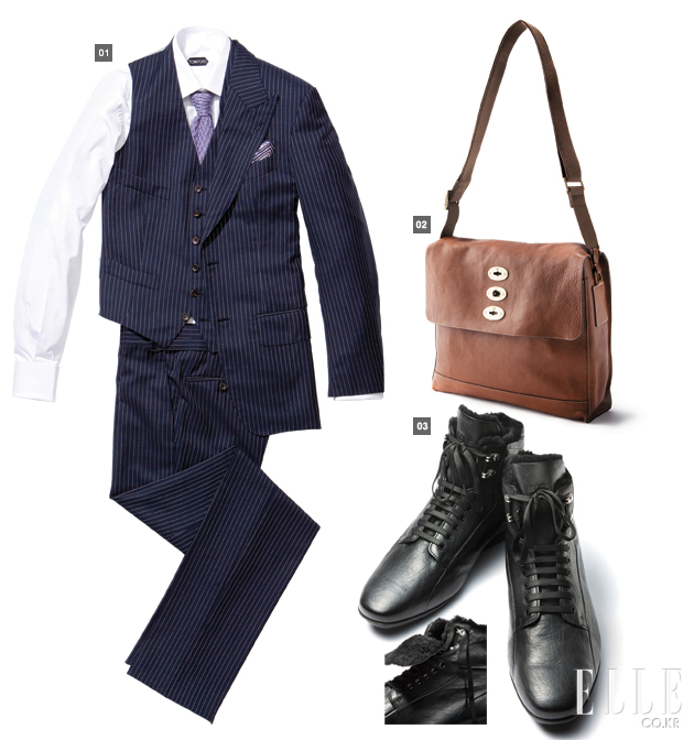 1 스리피스 수트 톰 포드 와이드한 피크트 라펠과 몸을 타고 흐르는 우아한 라인, 수트와 짝을 이루는 베스트까지. 진한 남자의 향기가 물씬 풍기는 아이템이다. 톰 포드 수트의 남자다운 매력은 눈으로 보는 것보다 직접 입었을 때 진가를 발휘한다. 평범한 자신의 스타일을 단번에 바꿔줄 자신감 넘치는 룩을 원한다면 톰 포드 수트가 정답이다. 가격미정 브랜드 매니저 이시영