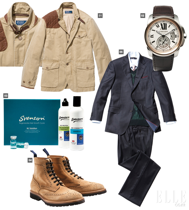 1 사파리 재킷 폴로 랄프 로렌 아웃도어 감성으로 가득한 사파리 재킷이다. 실용적인 아웃 포켓, 목 여밈 디테일, 가죽 팔꿈치 패치 등 사파리 재킷의 기본적인 요소를 두루 갖추었다. 사파리 재킷은 역시 데님 팬츠, 헌팅캡, 데저트 부츠 등과 함께 매치해야 제맛이다. 그야말로 가을에 빛을 발휘할 스타일. 58만원 MD 심영주
