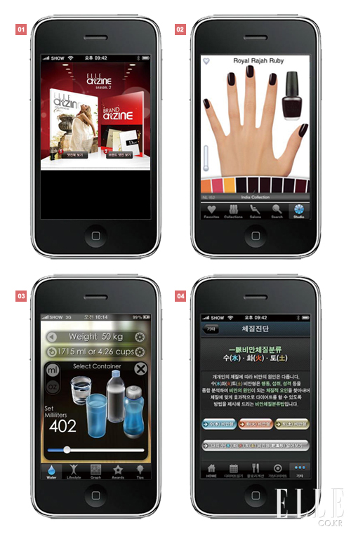 1 ELLE Atzine 패션 매거진 ELLE의 컨텐츠를 e-Book 으로 볼 수 있는 것은 물론 가상의 쇼핑 공간에서 패션, 뷰티 아이템을 살펴보고 마음에 드는 것은 저장해뒀다가 자신만의 콘텐츠로 꾸밀 수 있는 엘르엣진의 애플리케이션. 이제 언제 어디서나 쇼핑의 재미를 즐길 수 있다. 안드로이드 전용으로 출시.