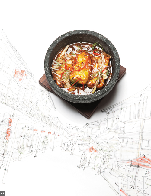 4 밥냄새 가득한 골목 토치기, 니쿠자가 나는 토치기라는 지역에서 태어났다. 숲과 강에 둘러싸인 조용한 동네였다. 부모님은 라멘 가게를 운영하셨다. 고향 사람들은 메뚜기를 바짝 졸여 먹거나 시모츠카산 두부를 으깬 요리를 즐기기도 했지만, 우리 집 식단은 대체로 라멘이었다. 나무 위에 아지트를 지어놓고 만화책을 보관하던 어린 시절, 어쩌다 가족과 스시를 먹으러 가면 수족관에서 반짝이는 생선 비늘에 넋을 잃었다. 스시 요리사가 되겠다는 꿈은 그때부터 시작됐고, 도쿄의 전설적인 식당 ‘스시 큐베이’에 들어가며 성취됐다. 어릴 적을 떠올리면 역시 라멘이 가장 많이 떠오르지만, 가끔씩 어머니가 해주던 일본식 가정 요리가 더 그립다. 일본 요리에는 오색오미(五色五味)라는 말이 있다. 한 상 위에 다섯 개의 색과 다섯 개의 맛이 반드시 올라가야 한다는 뜻이다. 그래서 일본에는 자장면처럼 색깔 하나가 지배적인 상차림이 없다. 어머니는 오이절임과 낫토, 관동 지방 특유의 아와세 된장으로 끓인 미소시루 등 다양한 요리로 색을 맞췄다. 그중 적색을 담당하던 것이 고기감자조림인 니쿠자가()였다. 일본 음식은 간장 문화에 기초하고 있다. 농도와 달기가 지방에 따라 다른데, 가정식에 맞춰 맛을 연하게 하기 위해 오사카 지방의 간장을 사용했다. 감자와 쇠고기, 당면과 당근이 기본이며, 오키나와에서는 돼지고기를 사용하기도 한다. 그러나 어떤 지역에서 어떤 재료로 요리하든, 일본 사람이라면 이 요리에서 밥 냄새가 풍기는 귀갓길을 떠올릴 것이다. 내게는 그것이 고향 요리다.” 마츠모토 미즈호 (웨스틴 조선 ‘스시 조’ 셰프)