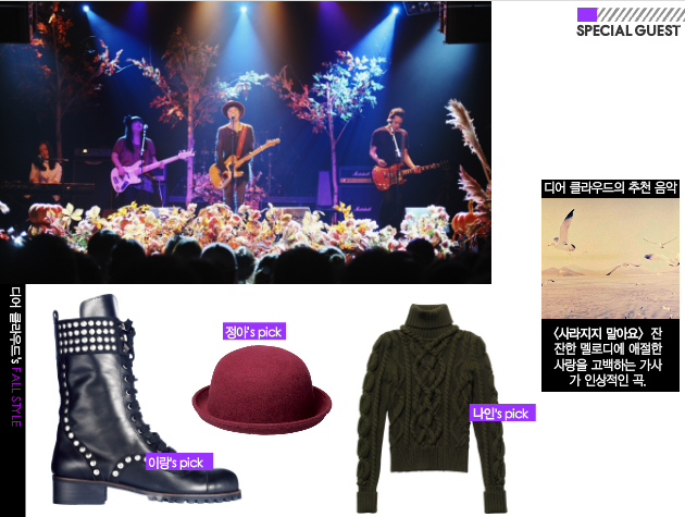 “안녕하세요. 홍대의 걸 그룹 도트입니다. 평소 엘르걸을 자주 보는데, 이렇게 엘르걸 페스타에서 공연을 하게 되다니 너무 놀랍고 기뻐요. 오늘 페스타의 주제처럼, 어쿠스틱과 잘 어울리는 걸 그룹 밴드랍니다. 앞으로도 많은 사랑 부탁드립니다.”