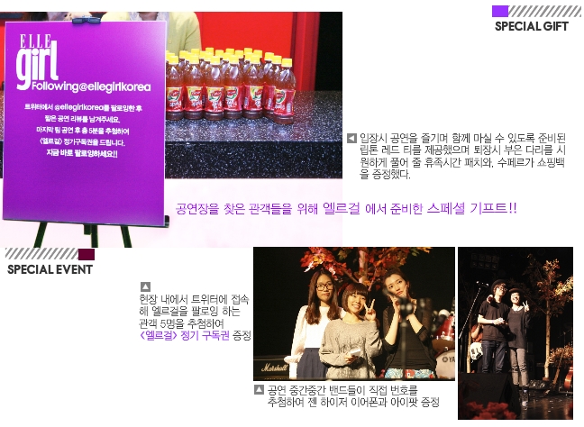 홍대의 여성 4인조 인디 밴드 도트. 제3회 엘르걸 페스타의 스타트를 끊은 그녀들의 공연은 모든 관객들을 감동시켰다.