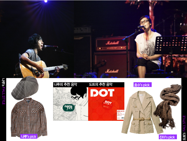 효수: 기온 차가 심한 가을 날씨에 적당한 두께 감의 재킷 하나 쯤은 가지고 있어야 할 것 같아요. 진아: 제가 추천하는 아이템은 클래식한 느낌의 머플러. 목을 따뜻하게 감싸주는 일석이조 아이템.