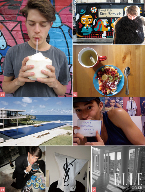 5 모델 활동 중 가장 기억에 남는 작업은? 두 시즌 전에 YSL 무대에 섰어요. 처음으로 그렇게 큰 쇼에 서기도 했지만, 가장 존경하는 디자이너의 쇼에 섰으니 당연히 흥분할 수밖에 없었죠. 지난달에는 라라 스톤, 스티븐 클라인과 10월에 나올 파리 <보그> 화보 촬영을 했어요. 하루 종일 여자 옷에 높은 하이힐을 신고 있었더니 지치던데요. 여자들은 정말 대단해요. |