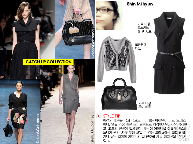 | 시크한 컬러와 미니멀 디자인은 페미닌하지만 당당한 커리어 우먼의 매력을 표현한다. 레이디라이크와 매니시의 경계에 있는 이 룩들은 리얼 웨이에서도 맘껏 활용할 수 있는 아이템이란 사실! 올 블랙에 플라워 프린트로 포인트를 준 돌체 앤 가바나부터 부드러운 시폰 소재에 모던한 볼레로 재킷을 매치한 보테가 베네타, 모던 시크의 절정을 보여준 스텔라 맥카트니까지. 세 가지 룩 모두가 데이과 나이트에 자유자재로 스타일링할 수 있다. 액세서리의 경우 유니크한 디테일이 가미된 ‘닥터 백’ 하나면 세 가지 스타일 모두 접목시킬 수 있다. |