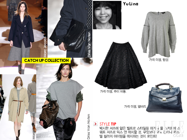 | 다가올 가을, 겨울은 S/S 시즌 화려한 컬러와 몸매가 드러내는 의상으로 지칠 대로 지친 눈과 몸에 위안을 줄 때. 편안한 실루엣과 톤 다운된 컬러에 주목하자! 2010 F/W 마크 제이콥스(Marc Jacobs)는 ‘과거로의 귀환’을 꿈꾸며 기존의 선보였던 의상에 몇 가지 변화를 주어 재해석한 박시한 코트와 베이식한 풀 스커트, 루즈한 니트 등을 선보였다. 오히려 마크보다 눈과 마음이 편안했던 쇼가 바로 마가렛 호웰(Margaret Howell). 런던에서 열린 그녀의 쇼 장 안에는 파스텔 톤의 로맨틱한 감성이 가득했다. 남성복을 먼저 시작했던 경험 때문인지 남성복에 사용되는 소재나 아이템에 여성스런 터치를 가미했다. 앞서 두 디자이너가 부드러움에 치중했다면 드리스 반 노튼(Dries Van Noten)은 내추럴 시크를 선사했다. 스웨트 소재의 티셔츠는 스포티해 보이는 동시에 믹스 앤 매치가 주는 강렬함을 느끼기에 충분했다. 무엇보다 레더 소재의 빅 백을 팔에 낀 채 무심하게 걸어 나오는 모델의 모습은 한 차원 진화된 시크의 결정체! |