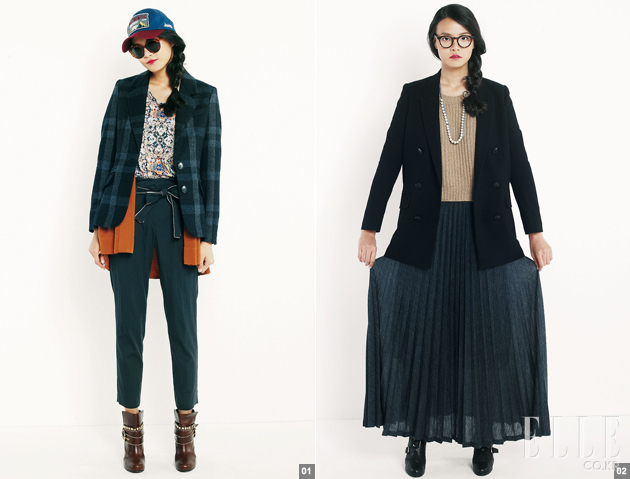 1 프린트 티셔츠. 6만8천원. 코데즈 컴바인. 루스 카디건. 48만5천원. 타임. 체크 재킷. 15만9천원. 망고. 배기팬츠. 가격 미정. 질 스튜어트. 캡. 4만원대. 지프. 선글라스. 가격 미정. 레주렉션. 앵클부츠. 굽 10cm. 가격 미정. 더슈. 2 니트 풀오버. 6만9천원. 플리츠 맥시 스커트. 11만9천원. 모두 자라. 테일러드 재킷. 가격 미정. 잭앤질. 브라운 안경. 가격 미정. 홀릭스. 진주 네크리스. 11만9천원. 아가타. 블랙 부츠. 굽 10cm. 가격 미정. 에고이스트. |