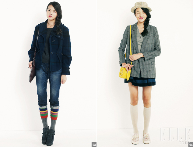 3 모직 체크 재킷. 가격 미정. 질 스튜어트. 풀오버. 14만8천원. 컬러풀한 니트 워머가 장식된 데님. 18만8천원. 모두 리바이스. 와인 컬러 백. 31×26cm. 82만원. 롱샴. 슈즈. 굽 11cm. 40만원대. 아쉬. 4 니트 톱. 4만9천원. 자라. 체크 재킷. 가격 미정. st.a. 플레어스커트. 가격 미정. 질 by 질 스튜어트. 프티 백. 16×14cm. 가격 미정. 보르보네제. 플로럴 스니커즈. 7만9천원. 수페르가. 니팅 해트. 니삭스. 모두 에디터 소장품. |