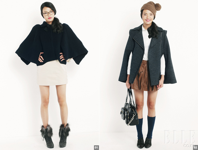 1 걸리시한 리본 장식 니트 케이프. 가격 미정. 질 by 질 스튜어트. 옆선에 레이스업 장식이 가미된 미니멀한 미니드레스. 가격 미정. 토크 서비스. 레오퍼드 패턴의 스퀘어 프레임 뿔테 안경. 60만원대. 린다 패로우 by 한독. 볼드한 골드 뱅글. 9만9천원. 폴리폴리. 청키한 퍼 트리밍 부츠. 굽 10cm. 가격 미정. 미소페. 2 베이식 화이트 셔츠. 5만9천원. 비지트 인 뉴욕. 레더 트리밍 모직 소재 케이프. 가격 미정. 세븐진. 브라운 레더 플레어스커트. 19만8천원. 오즈세컨. 폼폼 장식 캐멀 털모자. 큰 포켓이 장식된 블랙 토트백. 39×23cm. 모두 가격 미정. 모두 DKNY. 브라운 옥스퍼드 슈즈. 14만8천원. 바비 슈즈. |