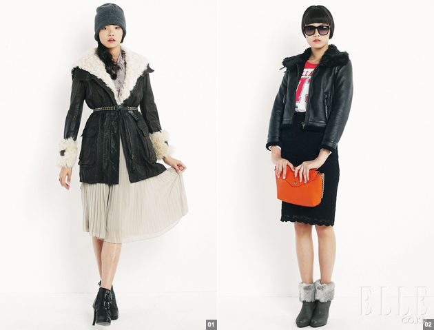 mouton jacket 무톤은 니트와 함께 이번 시즌 재조명된 잇 패브릭이다. 특히 애비에이터 재킷이라 불리는 무톤 소재의 바이크 재킷은 곱슬곱슬한 양털 트리밍이 가미된 것이 큰 특징. 다소 투박해 보일 수 있는 무톤 재킷을 현명하게 입으려면 버버리 프로섬의 컬렉션을 참고하자. 얇은 레이스 소재를 매치해 여성스러운 터치를 가미하거나 캐주얼한 스웨트 팬츠로 보이시 무드를 내볼 것. 또 리드 크라코프의 컬렉션처럼 맥시 스커트를 매치하면 이번 시즌 가장 트렌디한 룩을 완성할 수 있다.