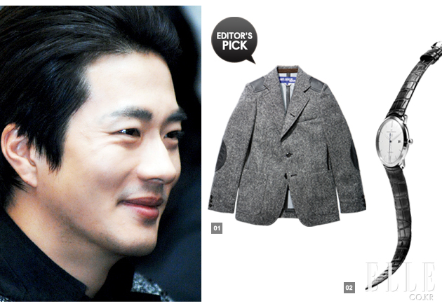 1 두꺼운 모직 소재의 패치 그레이 재킷. 2백18만원, 준야 와타나베. 2 레더 스트랩과 화이트 골드 프레임이 고급스러운 와치. 가격 미정, 지라드 페르고.