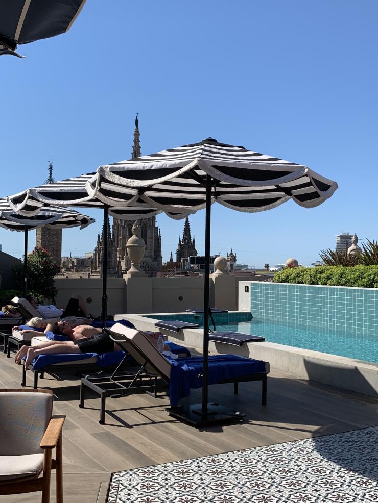 이번 여행 동안 여러 호텔에 머물게 되었는데, 인상 깊었던 점은 다른 유럽에 비해 가격 대비 호텔이 훌륭하며, 잘 갖춰진 루프탑이 있다는 점이에요. 레스토랑이나 바 또는 작은 풀이 있어 일광욕이나 수영을 즐길 수 있답니다. 바르셀로나의 풍경이 내려다보이는 루프탑에서 아름다운 날씨와 여유도 꼭 즐겨보길 추천해요.