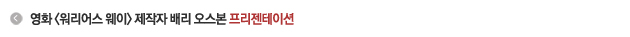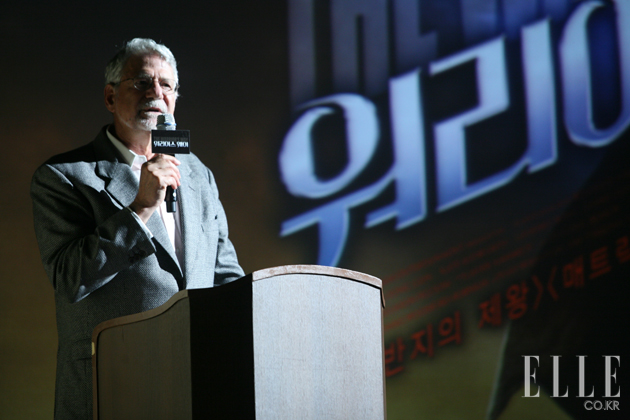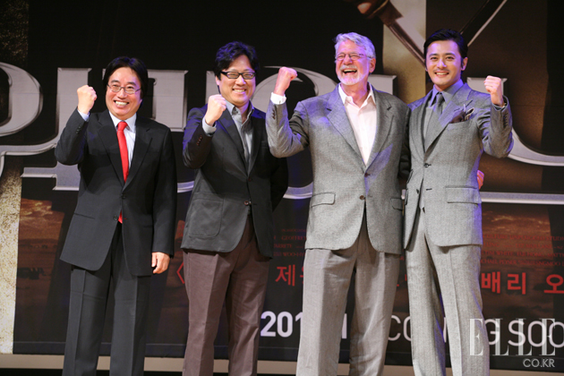 4. 스탭 반응 제 영화산업에서의 가장 중요한 요소는 두 가지가 있는데 첫 번째는 대본이고 두 번째는 캐스팅입니다. 그럼 여러분은 나머지 기술팀의 역할을 무엇입니까 라고 물으실 수 있으십니다. 그들의 역할로 인해서 바로 스토리와 대본이 산다는 것입니다. 이 영화는 우화를 얘기하고 있습니다. 화면에 우화의 세상을 재창출하는 것이 매우 중요합니다. 이상적인 서부극을 위해 수많은 나라를 찾아 봤지만, 그런 곳은 존재하지 않으며 반 세트와 반 블루스크린을 통해서만이 가능하다는 것을 깨달았습니다. 백그라운드는 CGI로 채우도록 했습니다. 우리 영화는 <아바타>와 같이 하나의 현실을 만들려고 노력을 한 것이 아니라 우화에서 창조한 것을 보여드리고 싶었습니다. 세트와 의상과 모든 것의 다양성에 맞췄습니다. 이런 것들을 모두 스크린에서 보시게 될 것입니다. 저는 특히 신선한 해석과 액션과 특유의 이야기로 인해 이 영화에 대해 많은 관심을 갖게 되었습니다. 환상적인 동양과 와일드한 서부를 조합한다는 스토리 때문에 장동건을 비롯한 제프리 러쉬, 케이스 보스워스, 대니 휴스턴과 수많은 스탭들 또한 이 작품에 참여하게 되었습니다. 헐리우드는 항상 세계적인 탤런트와 인재들을 수집하려고 노력했습니다. 지금 변하고 있는 세계적인 구도로 봤을 때, 이것은 굉장히 유연하다고 생각합니다. 헐리우드 인재 뿐 아니라 세계적인 투자와 제작을 함께 진행시키고 있습니다. 제가 제작한 <반지의 제왕>과 보더라도 해외 제작과 국제적인 배우들과 팀으로 진행된 것을 알 수 있습니다. 영화는 항상 글로벌한 세상이었으며, 앞으로 더 그럴 것입니다. 이는 한국 영화산업에도 좋은 기회라고 생각합니다. 한국 영화산업은 이미 세계의 영화산업에 상당한 영향을 끼치고 있습니다. 그리고 날로 성장해나가고 있습니다. 그 특유의 인기로 세계의 영화관객들에게 인기를 펼쳐 나가고 있습니다. 그래서 <워리어스 웨이>를 통해서 한국 산업에 훌륭한 인재들과 함께 할 수 있었습니다. 앞으로도 이주익 대표님과 다양한 작품을 추진할 계획이고, 다른 여러 가지 작품들에서 대해서도 얘기를 하고 있습니다. 지금까지 제 프리젠테이션을 들어주셔서 감사합니다.