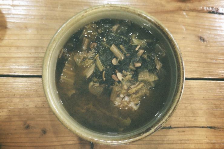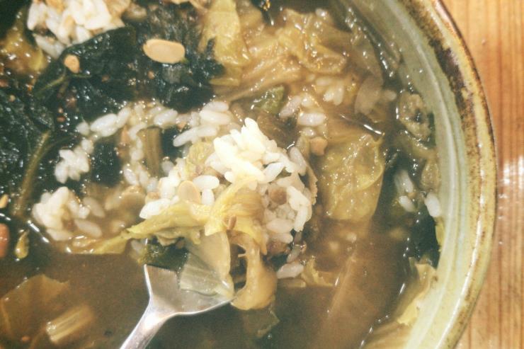 국에 밥을 살살 개어 숨 죽은 시래기와 따끈한 국물, 알알이 적당히 살아있는 밥을 동시에 한술 뜬다.