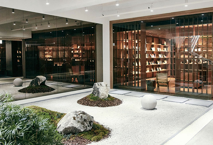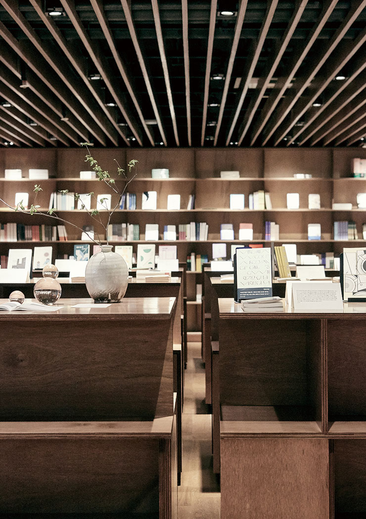 @eternaljourney_life 독서는 일종의 산책이라고, 어쩌다 산책의 프로젝트 디렉터 김수진은 생각했다. 책을 읽고, 사색하는 행위는 결국 우리를 어딘가로 데려다 주니까. 조용한 혜화동 골목, 건물 1층의 계단을 내려오면 비밀스럽게 모습을 드러내는 공간은 마치 서울 도심과 단절을 선포한 것 같다. 그에 대한 보상이랄까, 숲길을 걷는 듯한 조형물이 여기저기 놓여 있다. 정원 중앙에 단풍나무를 심고 바위와 이끼를 더한 것은 물론, 특별히 개발한 젖은 흙과 나무 향이 공간을 채운다. 천천히 거닐기 좋도록 서점과 카페, 팝업 스토어로 나뉜 세 구역은 매달 새로운 주제가 관통한다. ‘어쩌다 산책’의 취향으로 꾸려지는 서점은 그중에서도 중심이 되는 공간으로, 한 자 한 자 공들여 쓴 큐레이션 노트를 읽다 보면 모든 책들이 애틋하게 느껴질지도 모른다. 물론 계절마다 바뀌는 시그너처 음료를 마실 수 있는 카페, 공간의 철학을 잇는 브랜드들이 앞다투어 자리를 메우는 팝업 스토어도 이 공간에 좀 더 오래 머물러야 하는 이유가 된다.