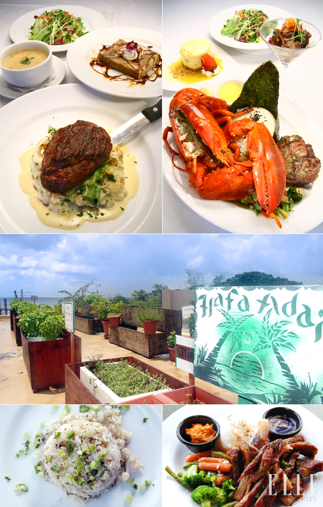 | 언더워터월드의 관람을 마친후엔 자연스럽게 동선은 씨그릴 레스토랑으로 이어져 있다. 총 3층으로 각 층마다 컨셉츄얼한 음식을 선보이는 이 곳은 기본적으로 육류와 해산물의 퓨전 음식을 제공한다. 하와이 출신의 7성급 쉐프 샘 초이가 깊이있게 매달 개발하는 하와이 스타일의 퓨전 음식은 관광객들의 입맛에 향긋한 괌의 추억을 심어준다. 게다가 씨그릴 테라스에서 파릇하게 재배되는 허브들은 자연의 햇살, 바람, 비를 맞으며 자란 무공해 식재료다. |