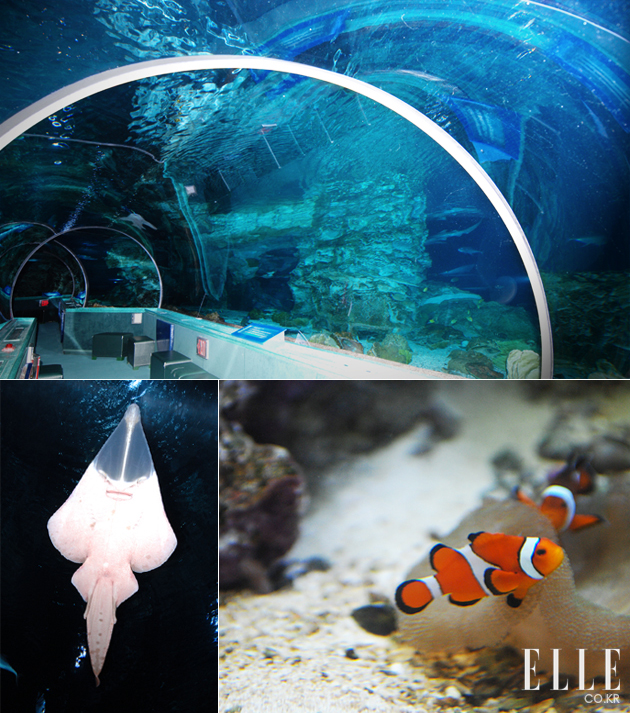 남태평양 해저지역에서 사는 수백종의 물고기들이 헤엄치는 수족관 내부.