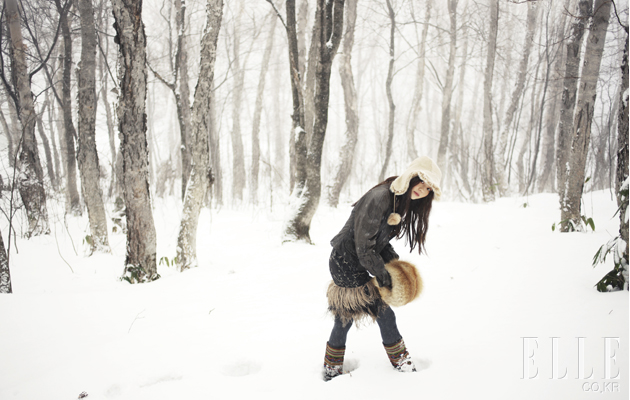 Park Ki-sook for January 2009 Issue 사진 그대로, 눈 세상이었다. 찍으면서 아주 추운 겨울날,?아이 얼굴을 가진 모델 이솜이? 따뜻한 코코아 한잔을 마시려고 친구 집을 찾아가는 모습같다는 생각을 했다. 아직도 따뜻하게 남아있는 일본 홋가이도 호타루의 기억은 마치 동화의 한 장면 같기만 하다. 그곳은 가족 말고 애인하고 도망가고 싶은 곳이었고, 그렇게 눈이 많이 내리는 건 처음 봤지만 전혀 춥지 않았다. 나는 모든사람이 자기만의 아름다움이 있다고 느끼고 모두를 바라본다. 못생긴 부분도 마찬가지. 그걸 숨기지 않을 때 가장 멋지다. 여기에 장소가 어떤 구체적인 느낌을 불러 일으킬 수 있다면 더욱 좋다. 그리움도, 우울함도, 담백함도 좋다. 어디서 많이 본듯한 것이 아니라 자기만의 것을 끌어 내는 모델을 좋아한다. 언젠가 사계절의 아름다운 지구와 예쁜 할머니, 할아버지와 젊은이와 어린아이들 그리고 동물들이 함께? 등장하는? 화보를 찍고 싶다.