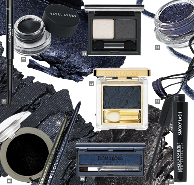 1 샤넬 스틸로 이으 워터 프루프 36,000원 얼룩과 번짐 방지 기능으로 하루종일 깔끔한 눈매 연출, 0.3g. 2 바비 브라운 롱 웨어 젤 아이라이너 32,000원 신속하게 마르고 정교하게 그려지는 롱 래스팅 포뮬러, 3g. 3 엘리자베스 아덴 더블 인트리그 아이 16,000원 스모키 아이 연출에 적합한 섀도 듀오, 3.4g. 4 비디비치 by 이경민 다이아몬드 섀도 28,000원 어번 그레이 컬러, 미세 스파클의 3D 반짝임, 2.5g. 5 스틸라 스머지 스틱 아이라이너 27,000원 하루종일 번짐 없이 유지되는 워터프루프 포뮬러 0.28g. 6 지방시 르 프리즘 이으 콰트로 가격 미정 새틴같이 마무리되는 미세 파우더, 은은한 시머링 효과, 4g. 7 에스티 로더 퓨어 컬러 아이섀도 30,000원 단 한 번의 터치로 선명한 컬러와 생동감 부여, 2.1g. 8 질 스튜어트 젤리 아이컬러 37,000원 말캉말캉한 쿨링 젤 텍스처, 선명한 발색력, 6g. 9 안나 수이 아이 래시 컬러 15,000원 집기 어려운 안쪽과 바깥쪽 속눈썹까지 완벽하게 컬링. 10 메이크업 포에버 스모키 래시 마스카라 33,000원 스모키 아이에 어울리는 리얼 블랙 컬러, 볼륨 효과, 7ml.