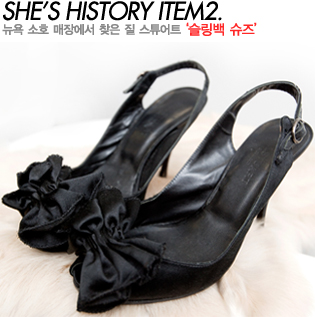 STYLE TIP 러블리한 리본의 블랙 슬링백슈즈는 어느 의상과 모두 잘 어울리는 모던한 아이템으로 화사한 파스텔 톤의 의상을 입었다면 블랙 머플러로 컬러를 통일해 밸런스를 맞추고 어두운 계통의 의상을 입었다면 백이나 액세서리로 포인트 스타일링 할 것. |