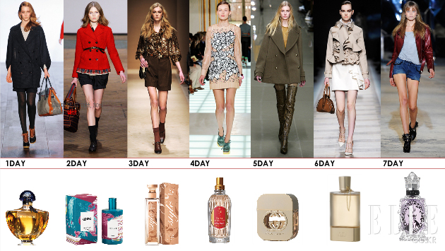 6 DAY 로맨틱한 패턴의 재킷과 스커트를 매치한 룩에는 포근한 느낌의 플로럴 향이 매력적인 끌로에 러브를 뿌려보자. 파우더리한 향이 스타일링을 한층 더 걸리시하게 만들어준다.