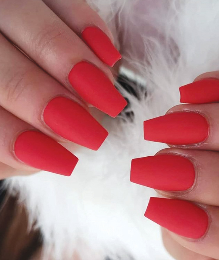 끝으로 갈수록 폭이 좁아지는 코핀(Coffin) 셰이프. 시체를 담는 관을 뜻하는 코핀 대신 발레리나의 토슈즈와 비슷하다고 해서 ‘발레리나 셰이프’라고도 불린다. 카일리 제너와 클로에 카다시언, 리한나가 애정하는 모양으로 각이져 부러지기 쉬우니 손톱을 길러 다듬기보다 인조 손톱을 붙이기를 권한다. 매니큐어를 풀콧으로 바르면 특유의 셰이프가 더욱 강조될 것이다.