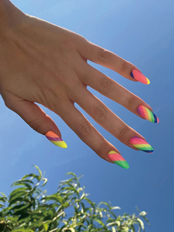 할리우드에서는 비교적 흔한 모양인 아몬드. 오벌처럼 둥근 곡선을 유지하긴 하지만 조금 더 길고 끝으로 갈수록 점차 좁아지는 형태를 띤다. 짧고 통통한 손가락이 가늘고 길어 보이는 효과를 주며 누구에게나, 어떤 디자인이나 무난하게 잘 어울릴 것. 반투명한 수채화나 화려한 타이다이처럼 딱히 손톱 모양을 강조할 필요가 없는 스타일을 자유롭게 연출해 보자.
