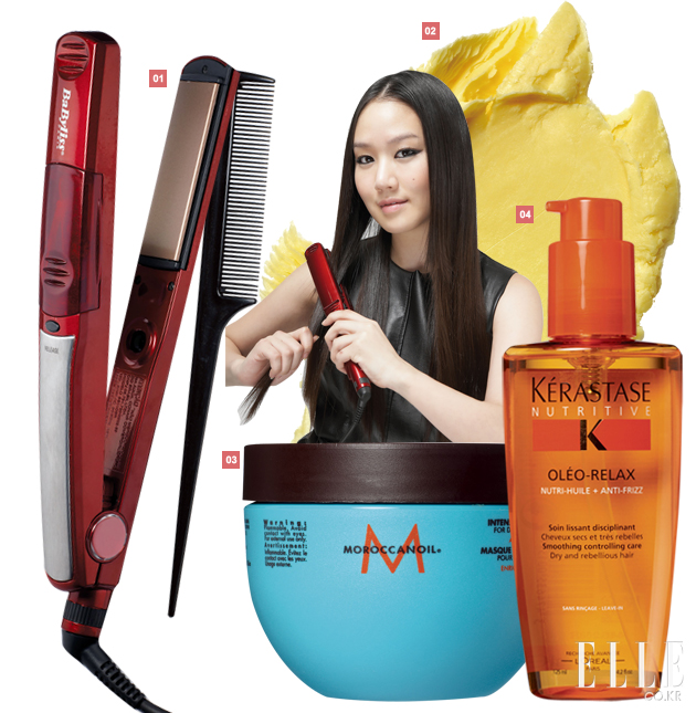 1 바비리스 엑스퍼트 스팀 스파 매직. 9만9천원. 2 비달사순 트리트먼트 왁스. 8천5백원대. 3 모로칸 오일 인텐스 하이드레이팅 마스크. 4만8천원. 4 케라스타즈 올레오-릴랙스 컨트롤 헤어. 4만5천원. |