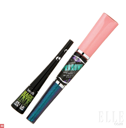 이 두 가지만 있으면 완벽한 파티 메이크업을 연출할 수 있을 듯! 먼저 매직 잉크는 섬세하고 정확한 아이라인을 그릴 수 있는 제품으로 잘 번지지 않아 편리했다. 무지갯빛 시머가 함유된 프라울은 마스카라 톱코트와 립글로스로 구성되어 오전에 하고 나온 내추럴 메이크업에 덧발라 화사함을 주는 데 효과적! 단독으로 사용해도 무방하며 생기 있는 룩을 원할 때 활용해볼 것을 추천한다. 매직 잉크. 2.5ml. 3만원. 프라울. 7.5g. 4만2천원. 베네피트. SU YOUNG