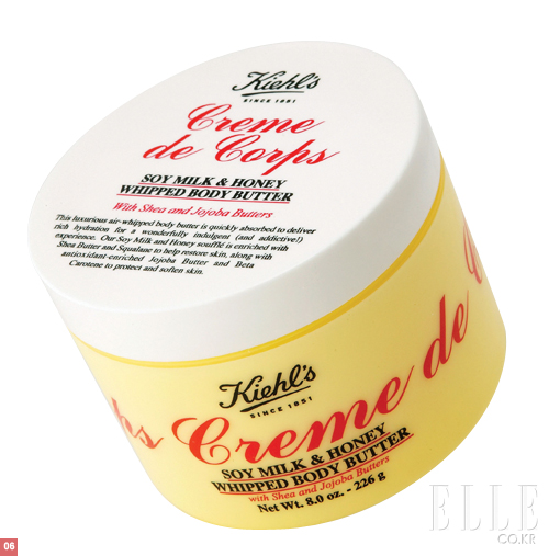 첫인상은 그다지 좋지 않았다. 버터 같은 텍스처가 뭉글뭉글 뭉쳐 있는 것이여느 보디 크림과 달랐기 때문. 하지만 막상 발라보니 흡수력이 빠르고 미끌거림이 남지 않아 마음에 쏙 들었다. 달콤한 향기가 부담스럽지 않았고 보습력도 탁월했다.다만 샤워 후 물기가 살짝 남아 있는 상태에서 사용해야더욱 부드럽게 바를 수 있고, 한 번에 듬뿍 바르기보다는 적당량을 넓게 펴 바르듯 사용해야 효과적이라는 사실을 알아둘 것. 226ml. 5만8천원. 키엘. SU YOUNG