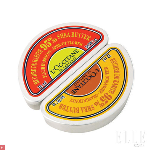 헤어, 페이스, 보디는 물론 아토피성 피부염과 아기들의 기저귀 발진, 선번 등의 피부 트러블에도 효과적인 멀티 타입 모이스처라이저. 기존 제품보다 크리미해진 텍스처 덕분에 바르기 수월하고, 소량만으로도 충분히 촉촉함을 느낄 수 있다는 것이 가장 큰 장점. 또한 은은한 향을 가미해 버터 향을 싫어했던 걸들도 무난하게 사용할 수 있다. 다만 용량이 다소 적다는 것이 아쉽다.각각 30ml. 2만원. 록시땅. SU YOUNG