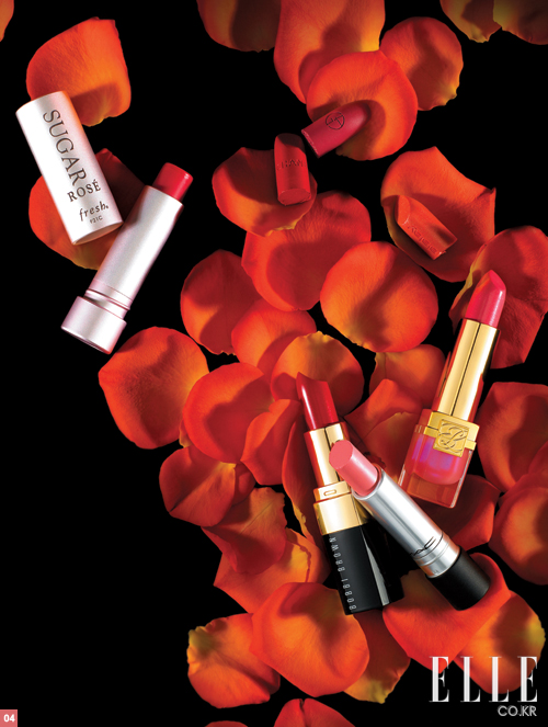 | 4 (왼쪽부터 시계 방향으로) 프레쉬 슈가 로제 립 트린트먼트 39,000원 생기 있는 입술로 연출해주는 립밤, 시트러스 레몬과 로즈 향, 4.3g. 샤넬 루즈 코코 39,000원 19 가브리엘, 입술에 즉각적인 수분막 형성, 은은한 바닐라와 장미 부케 향, 3.9g. 조르지오 아르마니 업타운 모브 루즈 아르마니 39,000원 605 센슈얼 모브, 오펄 펄이 은은한 빛과 촉촉한 마무리감 선사, 4g. 시슬리 휘또 립 샤인 시머링 트리트먼트 립스틱 48,000원 3 시어 로즈, 플럼핑 효과와 함께 빛나는 광채 선사. 3g. 에스티 로더 퓨어칼라 36,000원 크리스탈 핑크, 뛰어난 발색력과 산뜻한 마무리감, 3.8g. 맥 프로 롱웨어 립크림 28,000원 오버타임, 베이비 핑크 컬러가 윤기 있고 혈색 도는 입술 표현, 3.6g. 바비 브라운 립 컬러 34,000원 레드, 크리미하면서 매트한 마무리감, 비타민 성분이 입술을 보호함, 3.4g. |
