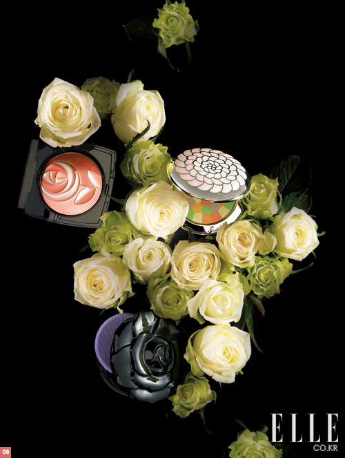6 (왼쪽부터 시계 방향으로) 랑콤 라 로즈 데코 72,000원 로즈우드와 핑크, 실버 컬러의 포뮬러가 벨벳처럼 빛나는 피부 표현을 돕는 멀티 컴팩트 파우더, 9g. 겔랑 메테오리트 보야지 200,000원 투명하게 피부톤을 정리해주는 3가지 컬러와 빛을 반사해 화사한 피부로 연출해주는 3가지 컬러가 혼합된 컴팩트 파우더, 장미꽃 패턴을 형상화한 케이스, 8g. 안나 수이 모이스처 리치 파우더 파운데이션 57,000원 보태니컬 포뮬러가 피부에 얇게 밀착돼 자연스럽고 결점 없는 깨끗한 피부톤을 연출해줌, 10g.