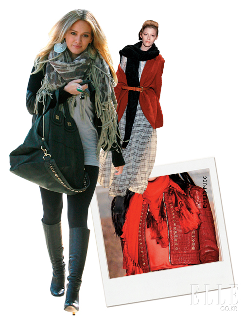 Hilary Duff 꾸미지 않은 듯하면서도 패션 센스를 은근히 드러낼 수 있는 최상의 솔루션은 역시 머플러다. 서늘해지는 F/W 시즌, 목을 따뜻하게 감싸주는 것은 물론 어딘지 허전한 루킹의 2%를 채워주는 잇 아이템. 두르는 방법에 따라 다양한 분위기를 연출할 수 있다는 것이 장점이다. 머플러 마니아로 꼽히는 힐러리 더프는 풍성한 머플러를 이용해 심플한 룩에 활기를 불어넣는 스마트 스타일링의 대표주자로 모노 톤 패션에 화려한 컬러와 패턴이 돋보이는 머플러를 매칭한다. |