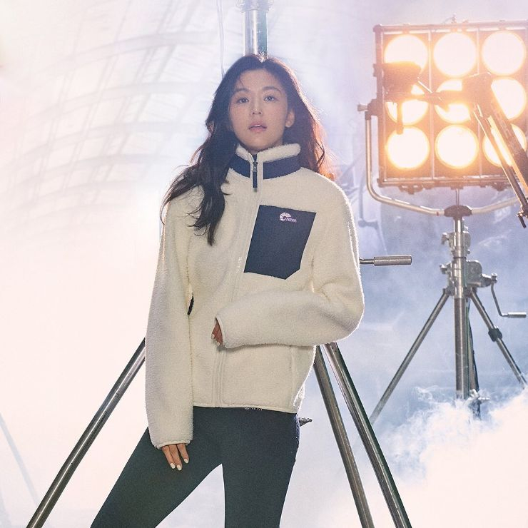 골스튜디오(GOALSTUDIO)의 화이트 플리스 집업을 선택한 배우 정려원