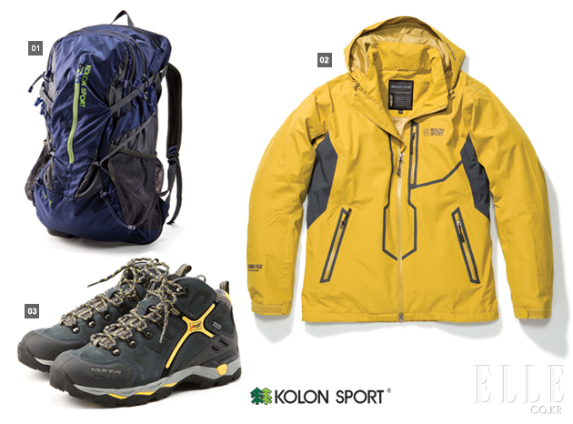 1 수납공간이 넉넉한 등산용 백팩. 15만5천원 2 방수, 투습 기능이 탁월한 고어텍스 재킷. 접착식 봉제로 무게를 최소화했 다. 36만원 3 내피의 고어텍스 소재가 장시간의 산행에도 쾌적함을 제공한다. 23만원