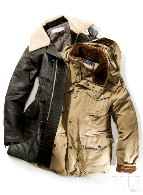 겨울이면 어김없이 등장하는 퍼 아우터. 하지만 전면에 털이 달린 아우터는 현실성이 떨어진다. 가장 베이식한 건 후드 라인을 따라 털이 달리거나 칼라 부분에만 털이 달린 하프코트 길이의 아우터다. 재킷 위에 걸쳐 세련된 세미 캐주얼 룩으로 연출하거나 면 소재 사파리 재킷 위에 입어 전통적인 아메리칸 캐주얼 룩을 연출한다. 머플러를 더하는 것도 좋다. 네크라인이 허전하면 퍼 아우터의 따뜻한 느낌을 반감시킬 수 있기 때문이다. |