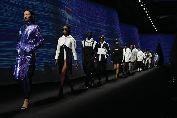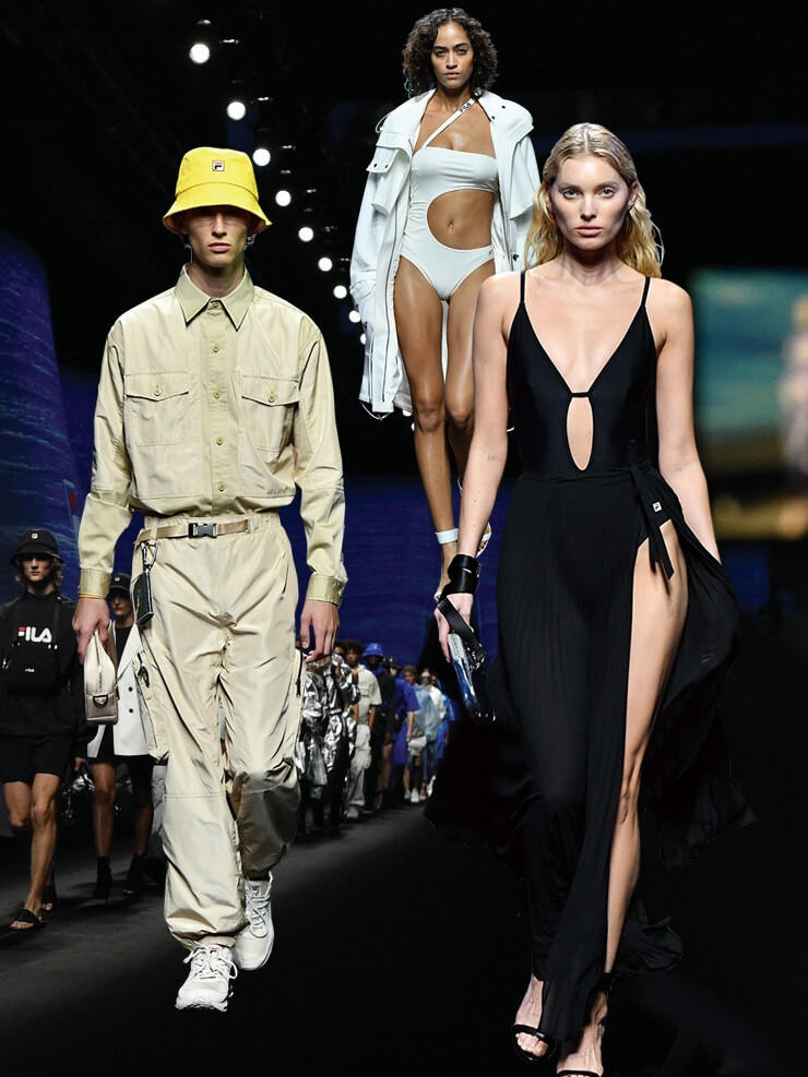 몇 해 전부터 거리는 물론 런웨이를 휩쓴 스트리트와 유스 컬처의 영향으로 카파, 엄브로, 리복 등 90년대에 각광받던 레트로 스포츠 브랜드의 주가가 덩달아 높아졌다. 90년대에 학창 시절을 보냈던 세대에게 가장 친숙한 스포츠 브랜드 중 하나인 휠라는 그 선두 격이었다. 2017년에 가장 ‘핫’한 디자이너였던 고샤 루브친스키와의 컬래버레이션으로 화제를 모은 휠라는 이후에도 바하 이스트, 어번 아웃피터스, 제이슨 우 등 다양한 브랜드와 협업하며 좋은 결과물을 냈고, 최근에는 펜디와 컬래버레이션하기도 했다. 여기서 멈추지 않고 지난해 스포츠웨어 브랜드로선 이례적으로 밀란 패션위크에 참가하기도 했던 휠라가 이번 2020 S/S 밀란 패션위크에 다시 한 번 모습을 드러냈다. 이번 컬렉션을 위해 디자이너 안토니노 잉그라시오타(Antonino Ingrasciotta)와 조셉 그래젤(Joseph Grasel)은 휠라가 지닌 정체성과 현대적 감성을 조합하는 실험을 이어갔다. 1970년대 인기를 끌었던 휠라의 ‘아쿠아 타임’ 컬렉션을 재해석하는가 하면 휠라만의 헤리티지와 스포티즘을 융합해 구현한 ‘SNBN(See Now Buy Now) 캡슐 컬렉션’의 새로운 버전도 공개한 것. 먼저 ‘아쿠아 타임’ 컬렉션을 위해서는 자연에서 영감을 얻은 키워드를 디자인에 응용했다. 물, 바람, 모래와 사구 등에서 모티프를 얻은 세일링 무드의 점퍼와 숫자로 포인트를 준 자수와 스포티한 컬러 블로킹 디테일, 메탈릭 소재가 미니멀한 스타일링과 어우러졌다. ‘워터 스포츠 라이프스타일’을 표방한 의상은 일상뿐 아니라 휴양지 혹은 특별한 디너 파티 의상으로도 손색없어 보였다(쇼 후반부에 등장한 블랙 슬리브리스 드레스들이 대표적인 예). 피날레에 등장한 의상은 휠라 고유 컬렉션인 ‘SNBN 캡슐 컬렉션’으로 내년까지 기다리지 않고 바로 구입할 수 있어 더욱 매력적이다. 재킷과 윈드 브레이커, 스웨트셔츠 같은 스포티한 아이템에 시퀸 소재 스커트와 티셔츠 드레스 같이 드레시한 아이템을 레이어드한 것이 특징. 이처럼 휠라는 다채로운 컬래버레이션과 독자적인 컬렉션을 전개해 나가며 스포츠 브랜드가 가진 한계를 넘어서고 있다. 추억 속에 머물기보단 새로운 분야에 끊임없이 도전하며 패셔너블함과 동시대적 이미지를 구축해 나가고 있는 휠라의 행보는 스포츠 브랜드가 추구해야 할 새로운 태도를 제시하고 있다.