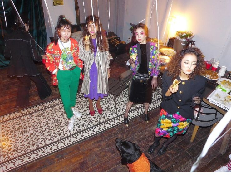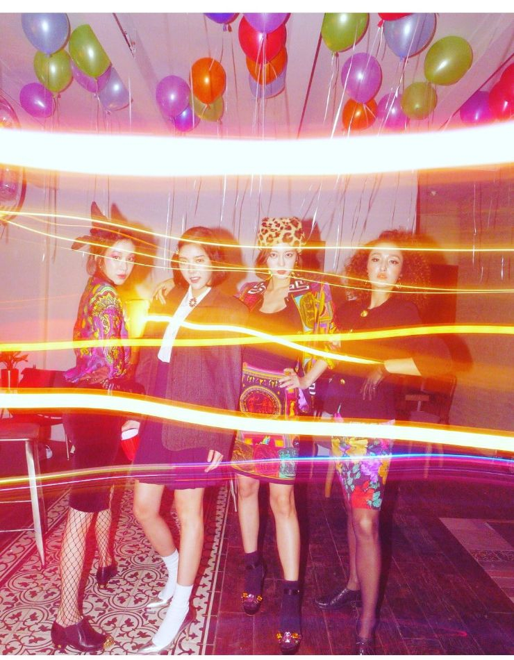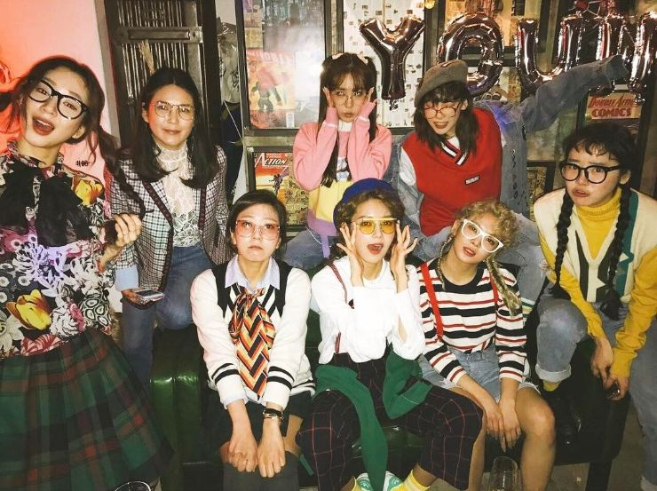 레트로 분위기를 물씬 느낄 수 있는 소녀시대 멤버들과 정려원 등 친구들이 함께한 사진에서 파티 룩 힌트를 얻어보세요! 박시한 로고 스웨트셔츠와 레드 컬러의 베스트 혹은 체크 팬츠와 스커트 아이템도 제격! 여기에 잠자리 안경 혹은 뿔테와 베레모, 멜빵(서스펜더)이 달린 데님 쇼츠, 틴티드 선글라스 등등 소품으로 힘을 주면 된답니다.