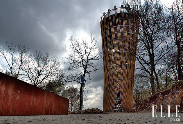 독일 허머의 전망대. 철골 구조에 240개의 목재를 얽히고설켜 만든 전망대다. 23.5미터의 꼭대기까지 총 다섯 단계의 전망홀이 있는데, 윗단계로 갈수록 전망대를 둘러싼 목재 간의 간격이 넓어져 시야가 확보된다. 인고의 계단을 끝까지 오르면 옥상에서 탁 트인 경치를 감상할 수 있다. www.birkundheilmeyer.de