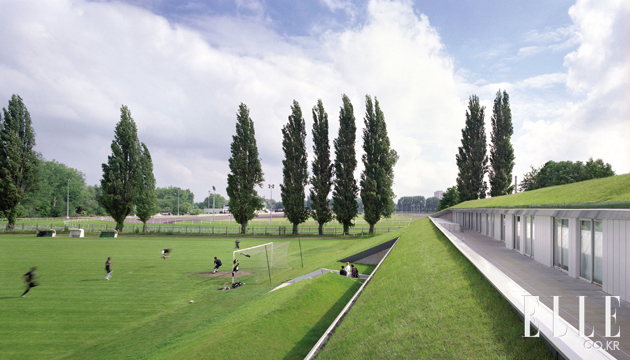 프랑스 건축가 샤르티에 카르바송(Chartier Carbasson)이 설계한 프랑스 아미앵의 축구 트레이닝 센터. 운동장의 잔디가 트레이닝 센터의 지붕까지 이어져, 멀리서 보면 건물이 잔디 언덕처럼 보인다. 1층에는 각종 훈련시설이, 2층에는 사무실과 선수들의 숙소가 있다. www.chartcorb.free.fr
