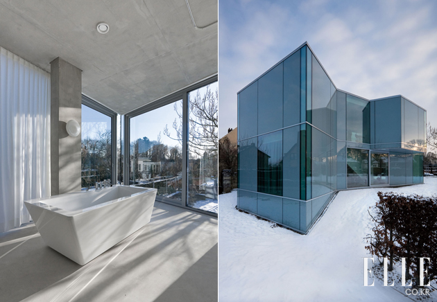 건물 전체를 유리 혹은 반투명 유리로 마감해 욕실까지 훤히 보이는 집. 한 네덜란드 커플의 러브 하우스다. 건축가 비엘 아레츠(Wiel Arets)는 집주인의 직업을 고려해 댄서이자 배우인 그들을 내보일 수 있는 무대 같은 집을, 조경 건축가이기도 한 그들이 어디서든 정원을 감상할 수 있는 맞춤형 하우스를 완성했다. www.wielaretsarchitects.nl