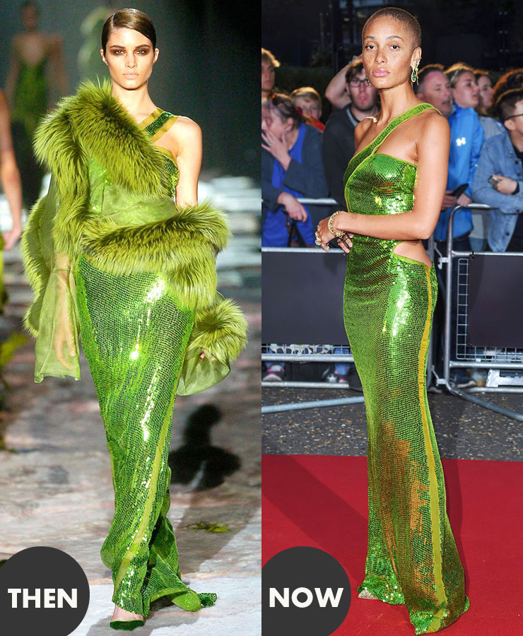 '아무도 입지 않은 신상이나 커스튬 룩을 입어야 한다'는 레드카펫의 불문율을 깨트린 스타를 소개해요. 영국 출신의 모델 애드와 아보아는 테이트 모던에서 열린 한 매거진 파티에서 2004년 톰 포드가 디자인한 구찌 빈티지 드레스 차림으로 등장해 눈길을 사로잡았답니다. 2004 F/W 컬렉션은 톰 포드가 구찌에서 선보인 마지막 쇼였는데요. 앞서 언급한 벨벳 수트와 화려한 드레스들은 15년이 흐른 지금까지도 여전히 유효하네요! 애드와는 마리자 부조빅이 입었던 드레스를 스타일리스트와 함께 리폼해 퍼 장식을 빼고 드롭 스타일의 에메랄드 이어링으로 애시드 그린 컬러의 드레스의 매력을 살렸답니다.