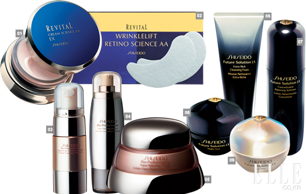 2009 퓨처 솔루션 LX 리바이탈, 바이오 퍼포먼스로 안티에이징 분야의 선두를 지켜온 시세이도는 2009년 또 한번의 진보를 이루어냈다. 하버드 의대, 전 세계 7곳의 연구 센터와 합동으로 피부 과학을 연구한 결과 세계 최초로 피부 노화의 근본 원인을 발견, 그 물질을 억제해주는 성분을 개발하는 데 성공한 것이다. 여기에 프리미엄 우지 녹차, 슈퍼 퍼밍 효모 추출물 등 일본 전통의 고귀한 성분과 최고의 항산화제만을 담았다. 이렇게 탄생한 프리미엄 안티에이징 라인 ‘퓨처 솔루션 LX’는 시세이도의 ‘그레이스풀 에이징’ 정신에 다가가는 최고의 아이템이다.