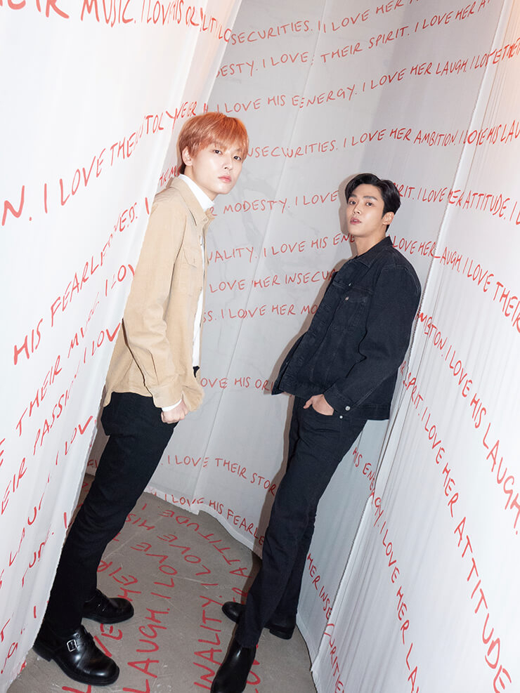 웃을 땐 누구보다 청량하고 눈빛은 섹시한 로운과 인성. 팔색조 매력으로 똘똘 뭉친 이들을 지면에서 다 소개하지 못한 아쉬움을 달래고자 엘르 웹사이트에서만 단독 공개하는 로운 & 인성의 비하인드 컷!