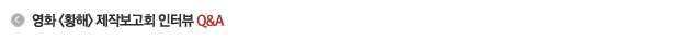 요즘은 황해보다 서해라는 말을 많이 쓰는데, 굳이 제목을 황해라고 한 이유가 있나? 나홍진 감독: 시나리오를 쓰다 보니 자연스럽게 떠오른 제목이 ‘황해’ 였다. 우리 영화의 모든 내용을 영화를 담고 있는 단어라고 생각한다. 영화를 보시면 아마 그 이유를 알게 될 거다.